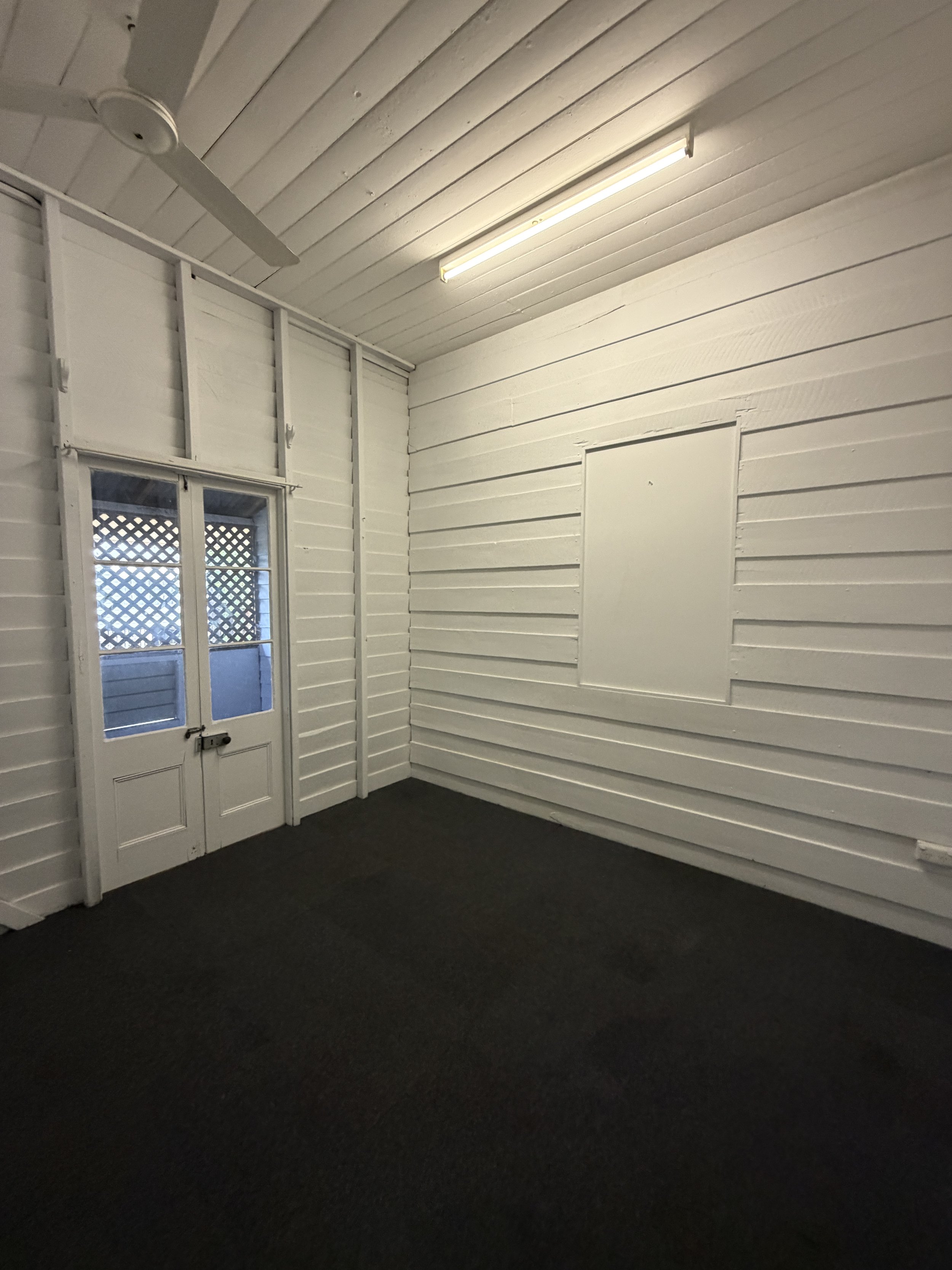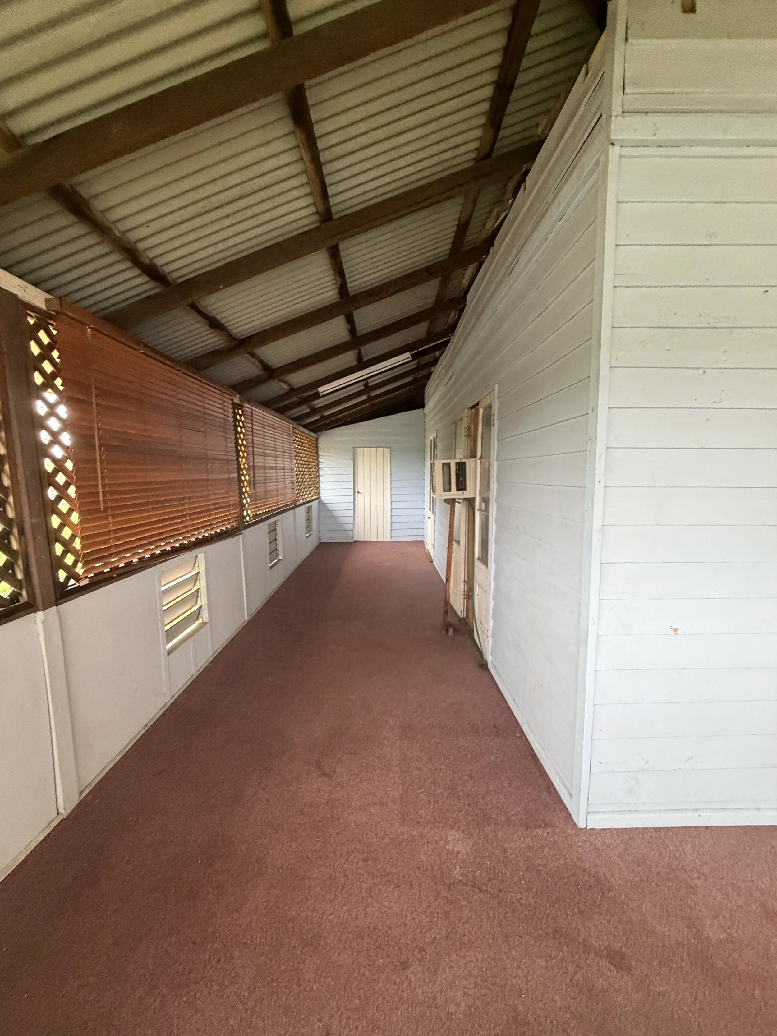 Carpeted lounge room with classic Queenslander feel